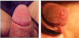 生殖器疱疹感染后平均约4~5日,男性阴茎、龟头等处先有灼热感,旋即发生成群丘疹,患者自觉疼痛。